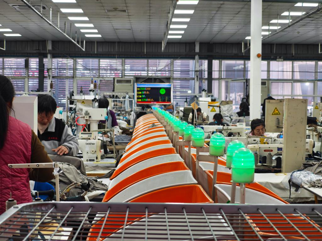 新华社济南2月10日电(记者李傲秋)春节临近,山东济宁爱丝制衣股份有限公司内仍是一派忙碌景象。“有了智能流水线,我们这一个班组每天能够加工200多套衣服,效率比以前提高了15%。”公司缝制班组长崔雪花说,公司订单已经排到了5月。
