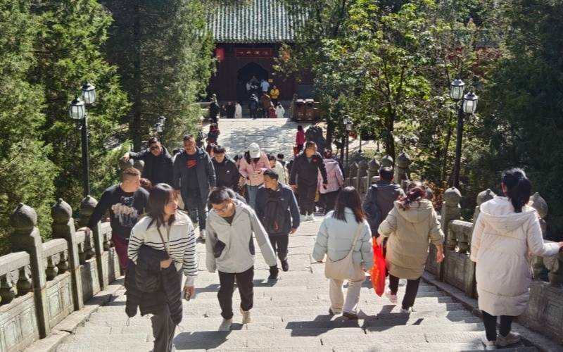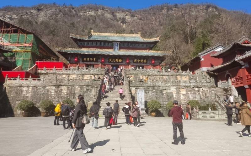 武当山紫霄宫开展为游客送“福”活动。