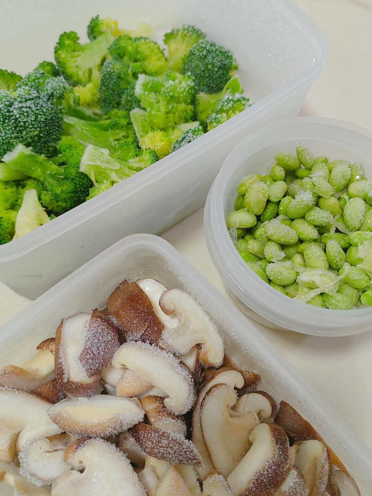 我个人现在就比较喜欢买冷冻的蔬菜,如香菇、西兰花、胡萝卜、青豆、韭菜,这些蔬菜冷冻后营养一点不比菜市场买的差,口感和新鲜的也没有太大差异,有些甚至比新鲜的更好吃。